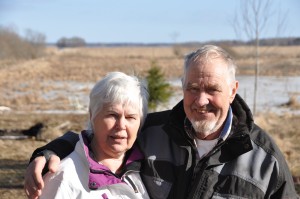 Bombmålet i Tämnaren *** Local Caption *** Bortom ängen tar den stora slättsjön Tämnaren vid. Barbro Öman minns att reaplanen väckte barnen när de var små när hon och maken Nils var ute och tröskade.